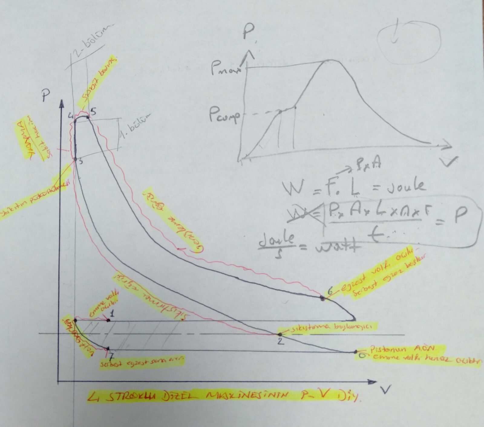 AÖN’dan önce 6 noktasında egzoz valfi açılır ve egzoz olayı ÜÖN’dan sonra bu vakfın kapanmasıyla 7 noktasında sona erer..